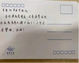 我们已经从高考的考场里走出来过了,而每一年的高考各不相同,唯一能确定的就是,高考的压力会一年比一年大,考题或许也会难度升级。我们的寥寥文字虽然不能帮他们考试加分,但是希望他们能在考前的最后十天感受到来自大学哥哥姐姐们的鼓励与期盼,又或者只是在看到明信片时稍微放松一下。