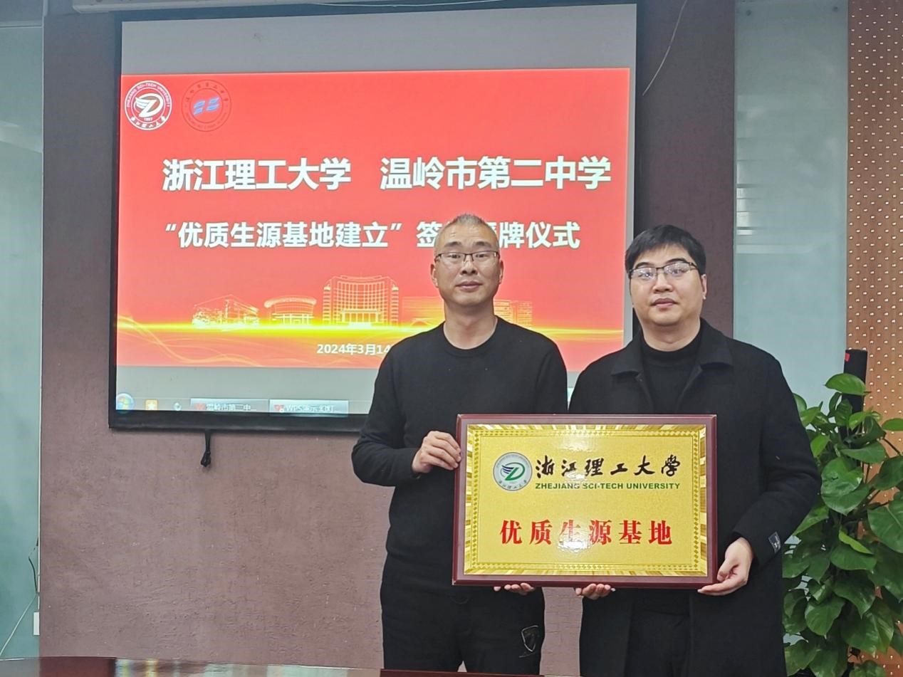 3月14日下午,​MK体育赴温岭市第二中学开展“优质生源基地”签约揭牌仪式暨“三位一体”招生宣讲。温岭市第二中学副董事长陈招才、温岭市第二中公司办主任甘爱根、温岭市第二中学团委书记郭敏剑,校招生与就业指导处副处长黄君,公司党委副书记周照东、材料工程系教工党支部书记林文鑫副教授、招生宣传员王依琳参加招生宣讲。