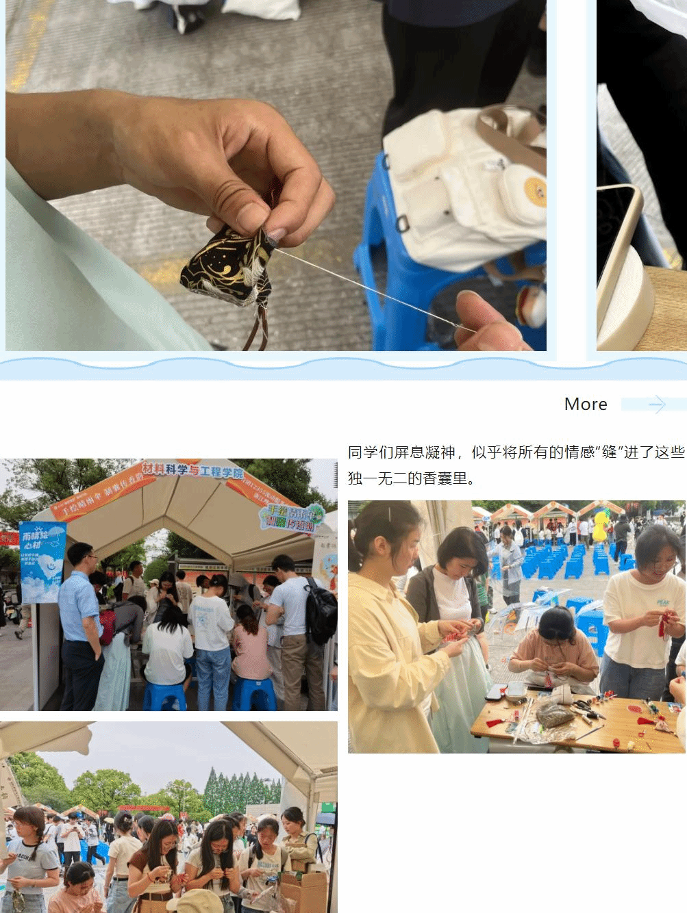 手绘晴雨伞的活动,让同学们发挥自己的想象力,用最直观的方式去表达自己的情绪与想法,在伞面去创作一个属于自己“天马行空”的小小世界,创造属于自己的好心“晴”;举办制囊传香韵活动,同学们手工缝制清心安神的香囊,在一针一线中陶冶情操,收获一路芳香。