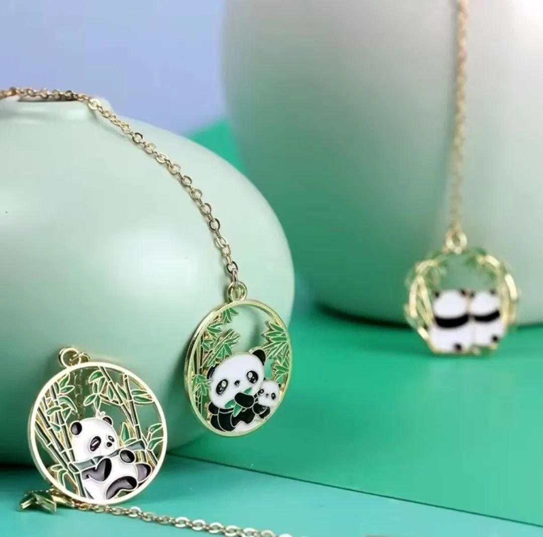 卡通国宝竹子吊坠金属书签