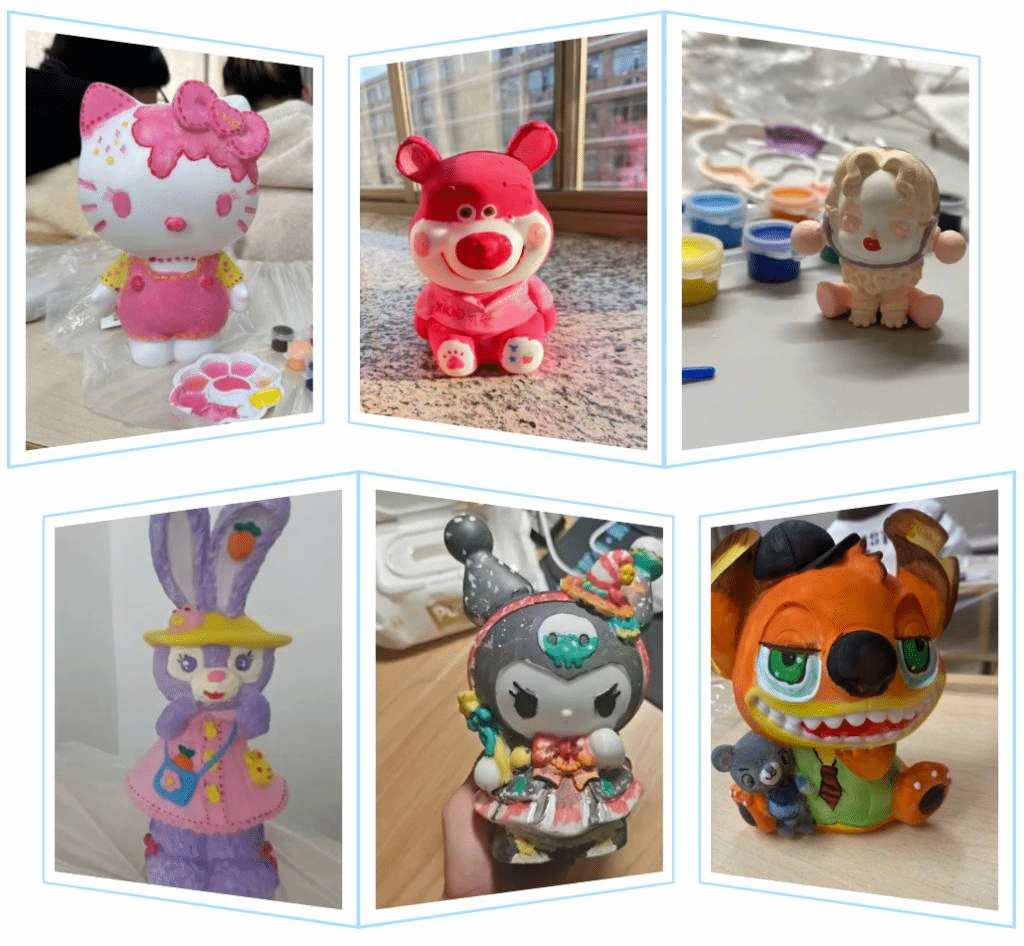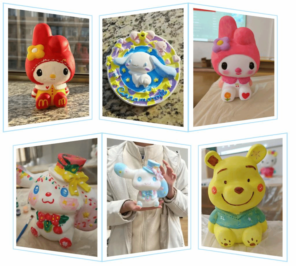 在石膏娃娃从纯白到逐渐焕发色彩的过程中,玩家的动手能力、想象空间也会不断的提升。制作和彩绘过程能让人放松,缓解压力,也为提供休闲娱乐和交流互动的机会。