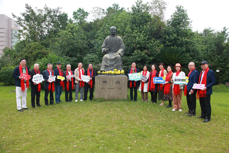 员工们漫步在校园并在图书馆前合影,一起庆祝MK体育办学127周年。他们来到公司的创立者、杭州知府林启先生的雕像前合影,留下共同的纪念。