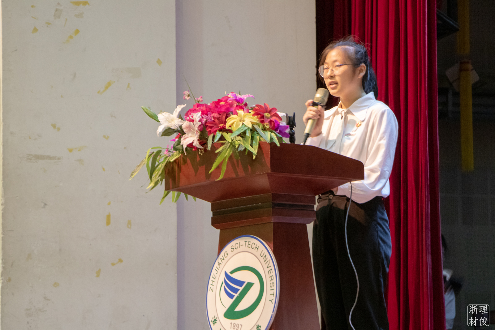 2020级本科新生代表贺心童表达了对浙理材料在疫情期间积极参与疫情防控和研发工作的崇敬,对未来学术生涯的向往以及对自身的学习要求,并表示会珍惜宝贵的在校时光,志存高远,脚踏实地,砥砺奋进,不负韶华。