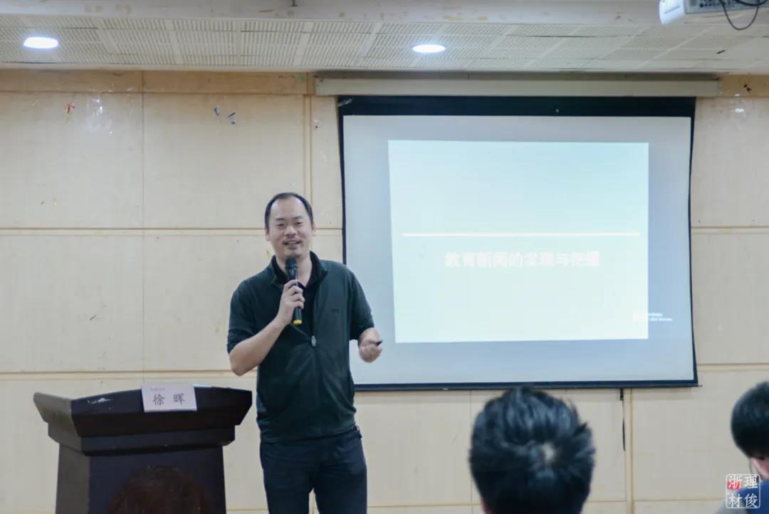 徐晖老师为全体学员带来第一次博材班课程暨专题学术讲座——“公司的朋友圈怎么发”。本次讲座题为教育新闻的发现与把握,在徐晖老师生动有趣的讲解下,全体同学对新闻宣传等方面有了更为深入的了解与认知。在自由提问环节,同学们积极地向徐晖老师进行提问,老师仔细地为同学们解答相关问题,大家都收获良多。