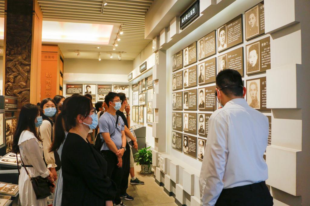 走出学习厅,大家一起前往中国共产党杭州历史馆第一展厅,在讲解员的讲解下,在大量珍贵实物、照片前,了解在杭州的中国共产党历史。一件件锈迹斑驳的武器,一幅幅镌刻历史的画卷,一张张写满故事的文稿,无声地诉说着革命先辈的荣光与艰辛。全体学员们怀着敬畏与感动参观着每一个历史片段,每一个人的眼中都显得更加坚定与刚毅。