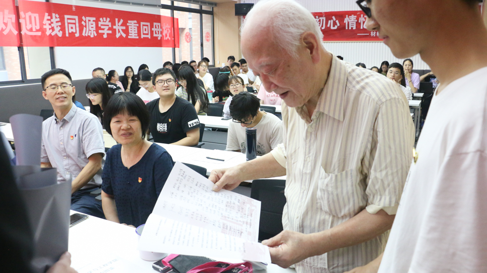 “百年风雨兼程,世纪沧桑巨变,我们党的100年,是一部自我奋斗的历史。” 86岁的老员工钱同源先生回到母校与老员工党员分享自己的入党初心和人生故事。6月2日下午,为提高新发展党员和毕业生党员政治素质和坚定理想信念,MK体育在24号楼415报告厅举行回眸百年话初心,情忆浙理续芳华党史学习教育专题党课、“材俊先锋”论坛暨员工分享会。邀请86岁老员工,原浙江省轻工业厅副厅长、党组副书记,浙江丝绸科学研究院经理、党委书记,浙江省丝绸公司经理、党委书记钱同源先生来校为老员工党员们讲党课。出席活动的有公司党委书记傅雅琴,党委副书记周照东、全体辅导员以及新发展预备党员、毕业班党员代表等80余人。