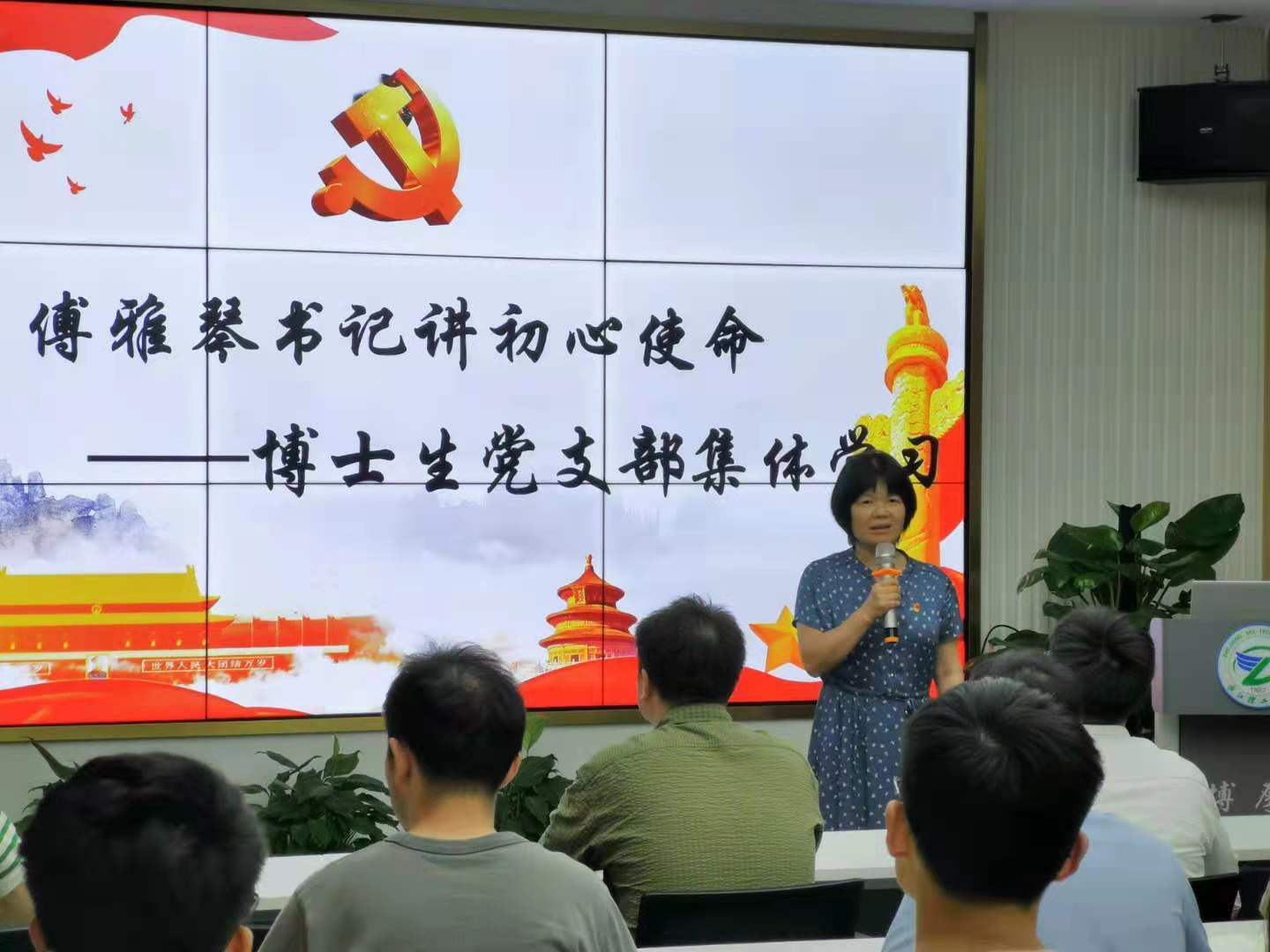 “大家为什么要选择读博士?为什么选择现在所研究的课题?”傅雅琴首先向大家抛出一个个问题,启发大家思考新时代博士生的初心与使命。并结合自身经历给博士党员们介绍了对初心和使命的理解。中国共产党人的初心和使命,就是为中国人民谋幸福、为中华民族谋复兴。这个初心和使命是激励中国共产党人不断前进的根本动力。而后,傅老师从科研人的角度,以袁隆平为榜样,向博士党员介绍了科研人应该拥有的初心和使命,告诉大家要保持高度的热情投入到科研工作中,为国家的日益强盛和新材料领域的进步增添一臂之力。又以陈文兴董事长为例,讲述了科研人在践行初心和使命的过程中所需要的品质,希望大家把自己的专业做到机制,更要懂得自己的成果是站在巨人的肩膀上取得的,要谦虚谨慎、戒骄戒躁。