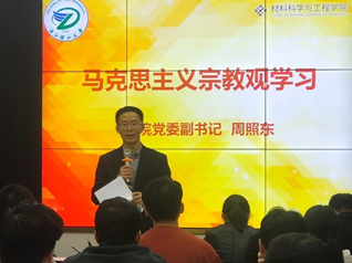 会上,周照东老师带领全体班团进行了马克思主义宗教观的专题学习,导读了宗教与教育的相关法律法规,着重强调教育和宗教相分离原则、不得在校园中参与宗教性质的传教活动、严禁非法聚集和严禁参加各种非法宗教活动、注意甄别各类社会活动的性质等,要求各班级员工干部关心同学,重点关注家庭有宗教信仰的员工情况,并通过寝室宣讲、班会等,务必向每个同学传达学习内容和要求。