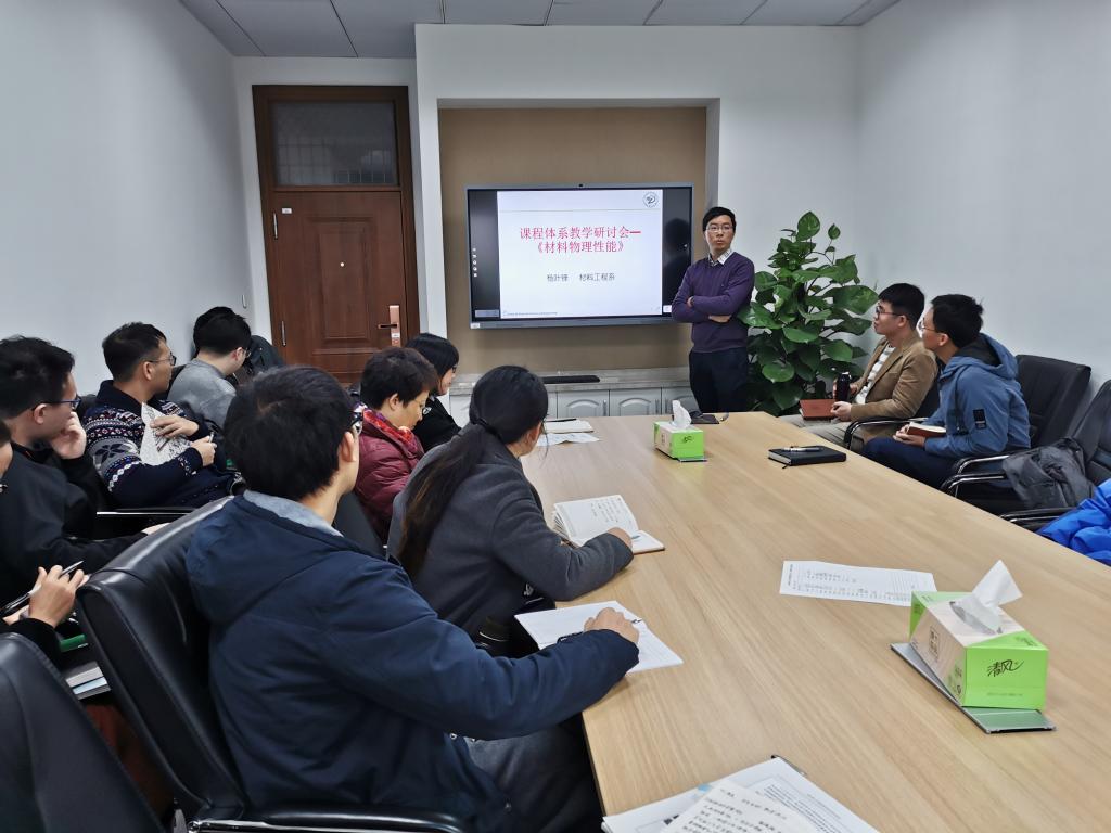 高俊阔、杨叶锋、陈光良、彭志勤、纪律律五位老师分别就《材料科学基础》《材料物理性能》《材料现代测试技术》《材料合成与制备技术》《材料工艺学》等五门课程的教学内容、课程建设计划、与前后课程的衔接关系等内容进行了讲解。同时,几位老师也就如何将课程思政融入课堂、如何将线上/线下课程相结合、如何结合典型应用案例等授课经验与在座的老师进行了分享。之后,与会老师围绕如何将自己的课程与核心课程形成衔接、是否需要核心课补充一些相关的基础知识、是否有科研或相关案例提供给核心课等问题进行了交流与讨论。